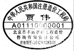 (二)注册造价工程师执业印章的字体:姓名为二号隶书,印章编号为小三号Arial字体,聘用单位名称及印章的有效期为小五号宋体,其它字体为四号宋体;